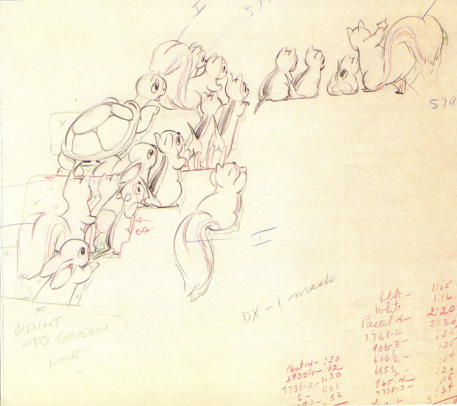 Rather than drawing the animals individually on separate pages, Larson animated them altogether on one. He spoke about this challenge in an interview with Michael Barrier...